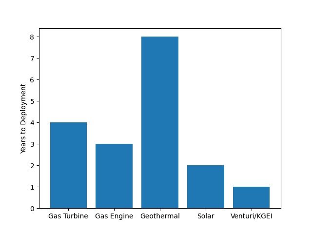 The following analysis demonstrates KGEI’s superior positioning across four critical evaluation dimensions: deployment timeline, infrastructure complexity, land usage, and lifetime cost of energy.